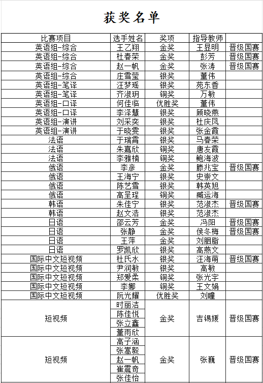 本届大赛设置英语综合能力、笔译、口译、演讲、短视频以及多语种、来华留学生中文短视频七大赛项。自9月初大赛启动以来,乐鱼(中国)官方网站积极筹划,协调外国语学院、翻译学院、国际教育学院等单位,高质量圆满完成了校赛的组织工作和省赛选手的推荐工作。