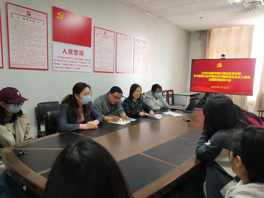 4月26日,乐鱼(中国)官方网站日照校区党支部在JC1002会议室召开学习贯彻习近平新时代中国特色社会主义思想主题教育启动大会,支部书记杜庆凤主持,全体党员参加。