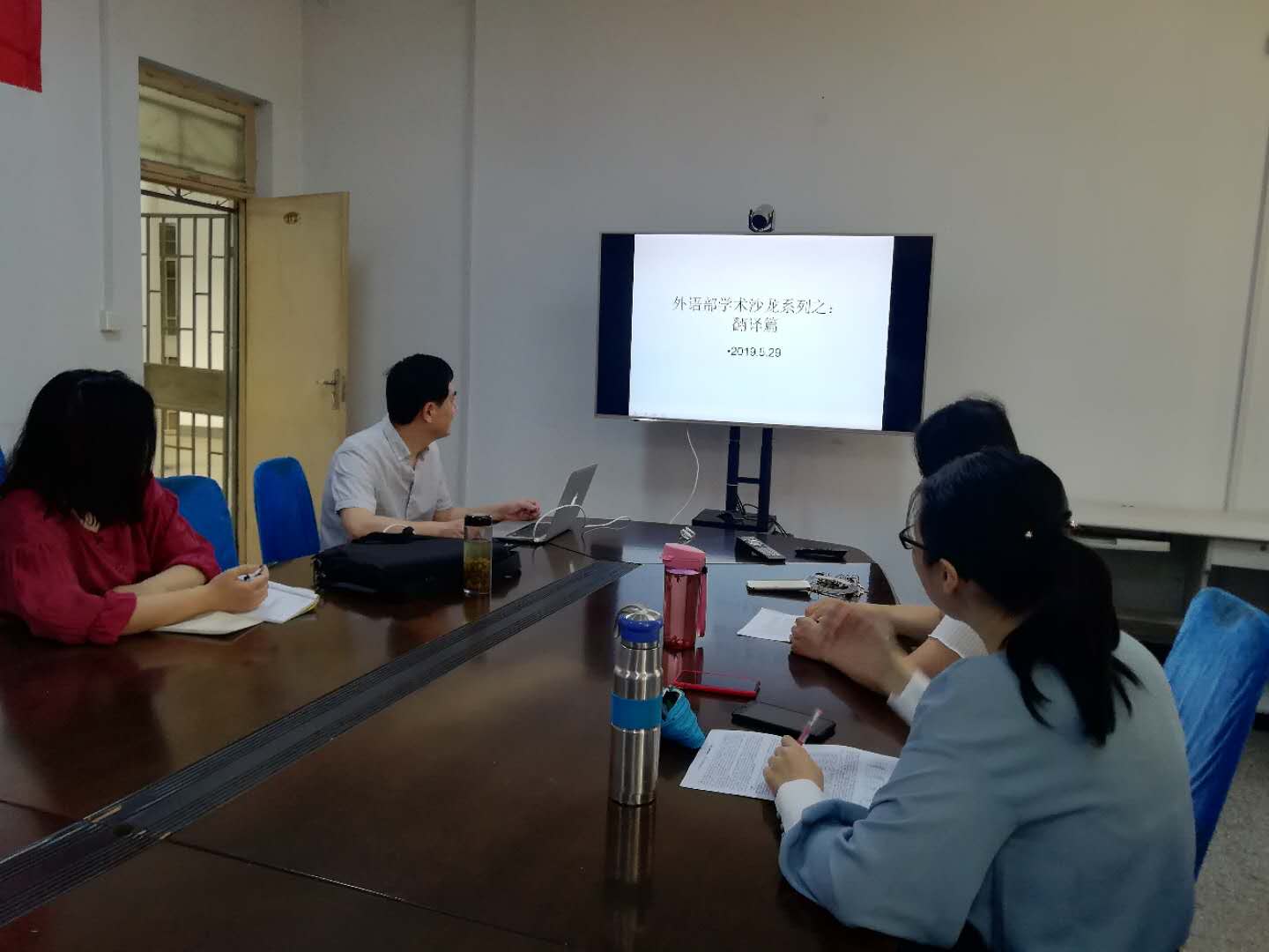 5月29日下午,乐鱼(中国)官方网站曲阜校区2019年系列学术沙龙在121会议室举行。围绕本期沙龙主题“翻译理论与实践”,三位报告人从翻译质量影响因素、翻译态度、翻译策略等层面作了论文展示和心得分享。