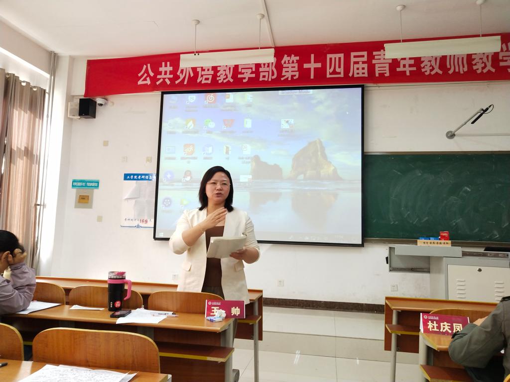 10月21日,乐鱼(中国)官方网站在日照校区JS105教室成功举办第十四届青年教师教学比赛乐鱼(中国)官方网站初赛。本次比赛根据学校教务处《关于举办乐鱼(中国)官方网站第十四届青年教师教学比赛的通知》精神要求组织实施,以锤炼青年教师教学基本功,提高教师队伍整体教学水平,促进师德师风建设为目标。共有10名青年教师报名参加本次比赛,翻译学院副教授王帅、乐鱼(中国)官方网站副教授杜庆凤、仲蕾、弭宁、曹爱萍担任本次赛事评委,全体教师全程观摩了本次赛事。