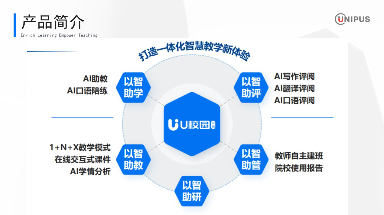 此次培训由北京外研在线数字科技有限公司的王慧敏老师主讲。培训伊始,王慧敏详细介绍了 U 校园 AI 版的产品定位,它是面向高校外语教学的一站式、个性化教学平台,致力于为院校外语教学提供混合式教学解决方案。其特色功能亮点突出,借助大语言模型、机器学习和自然语言处理技术,打造了 AI 助教、AI 写作评阅、AI 口语陪练、AI 翻译评阅和 AI 口语评阅等功能,还采用 1+N+X 教学模式、在线交互式课件以及 AI 学情分析等,助力教师实现趣味教学、智慧教学。