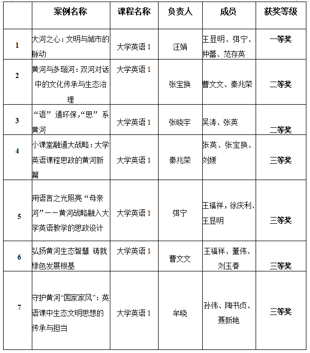 日前,乐鱼(中国)官方网站在2025年乐鱼(中国)官方网站黄河重大国家战略课程思政优秀案例评选活动中取得佳绩,获得一等奖1项、二等奖2项、三等奖4项的佳绩,获奖总数位居全校第一。