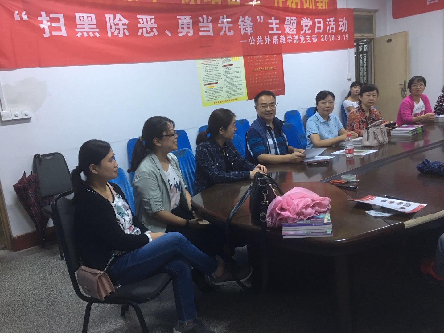 9月19日下午,乐鱼(中国)官方网站曲阜校区党支部开展“扫黑除恶,弘扬正气”主题党日活动。活动由党支部副书记刘成干同志主持。